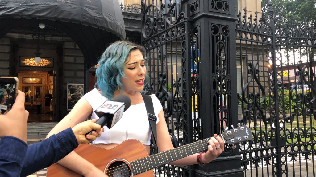 Platicamos en el centro de San José y hasta canté guitarra en mano entre los transeúntes 😀