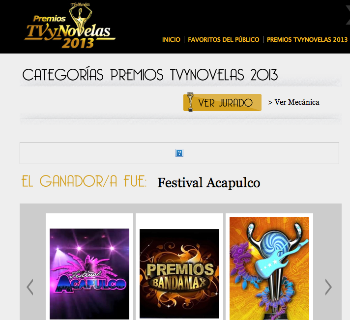 Se acaban de otorgar los Premios Tv y Novelas en vivo desde Acapulco, y en la categoría de «Programas Especiales» se lleva su premio el «Festival de Acapulco«.